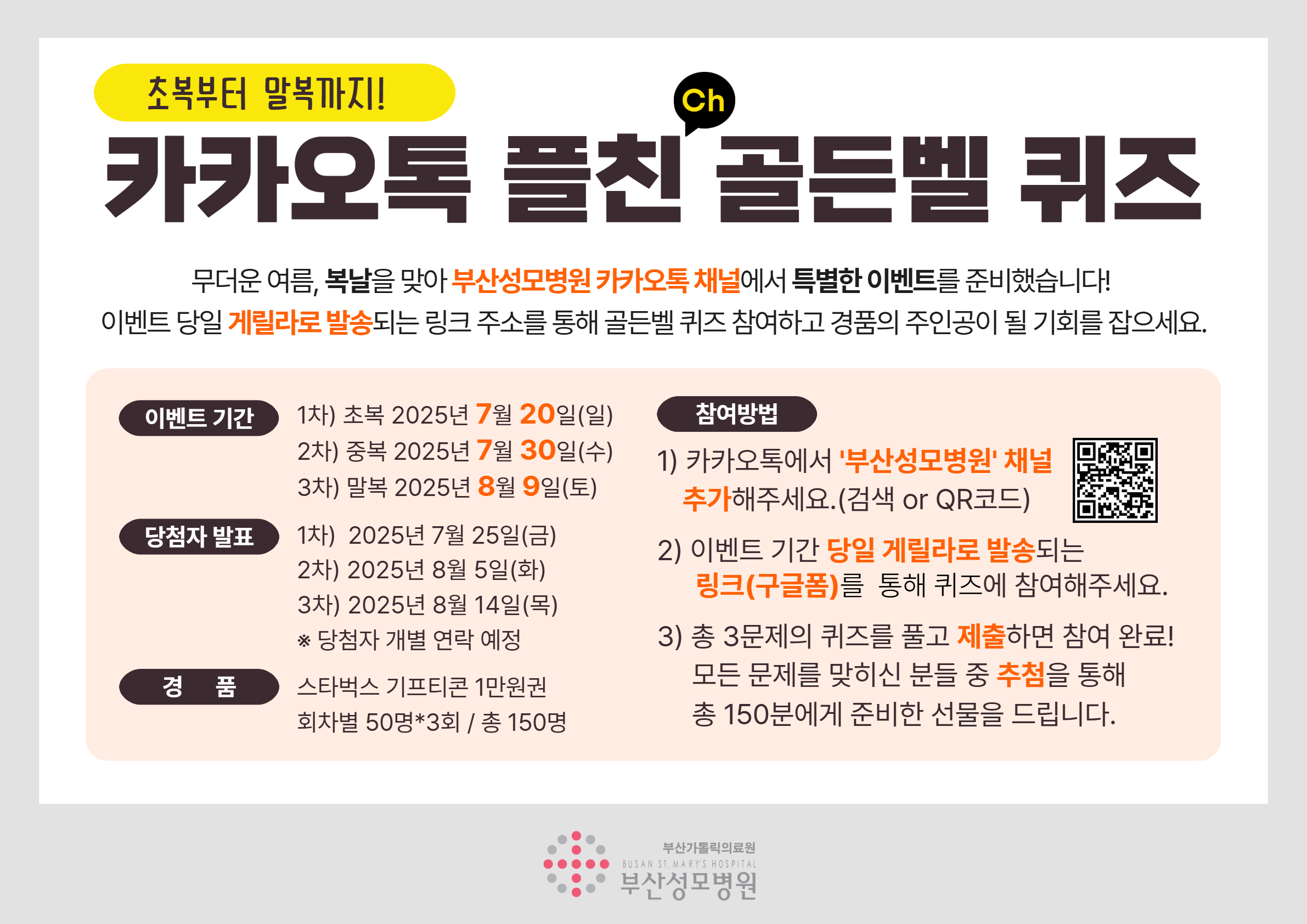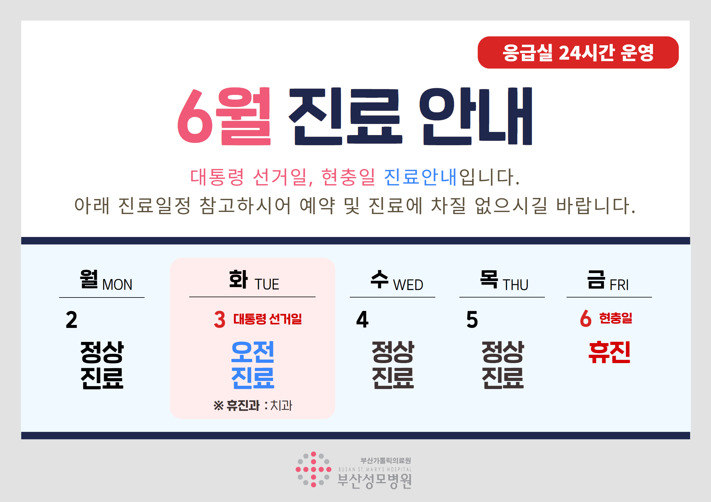 공지사항 초복부터 말복까지! 카카오톡 플친 골든벨 퀴즈 2025-07-14 관리자 신임 진료과장을 소개합니다 2025-06-30 관리자 6월 공휴일 진료 및 휴진 안내 2025-05-20 관리자 카카오톡 채널 추가 안내 2025-05-13 관리자 사전연명의료의향서 상담 안내 2025-05-12 관리자 간호간병통합서비스 병동 확대 운영 2025-04-17 관리자 1 | 2 | 3 | 4 | 5 | 6 | 7 | 8 제목 작성자 내용