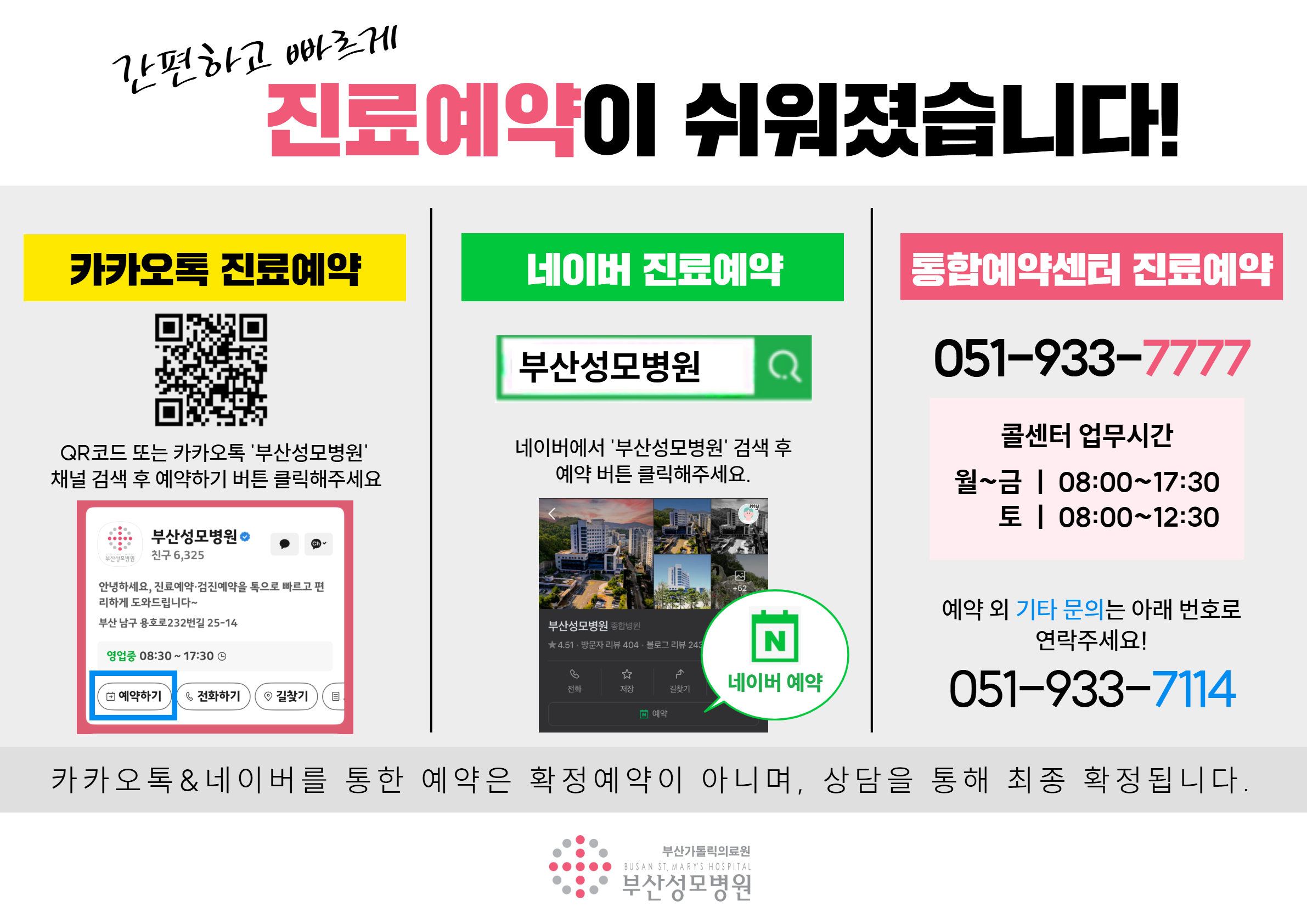 진료예약이 쉬워졌어요! 카카오톡예약·네이버예약 OPEN
