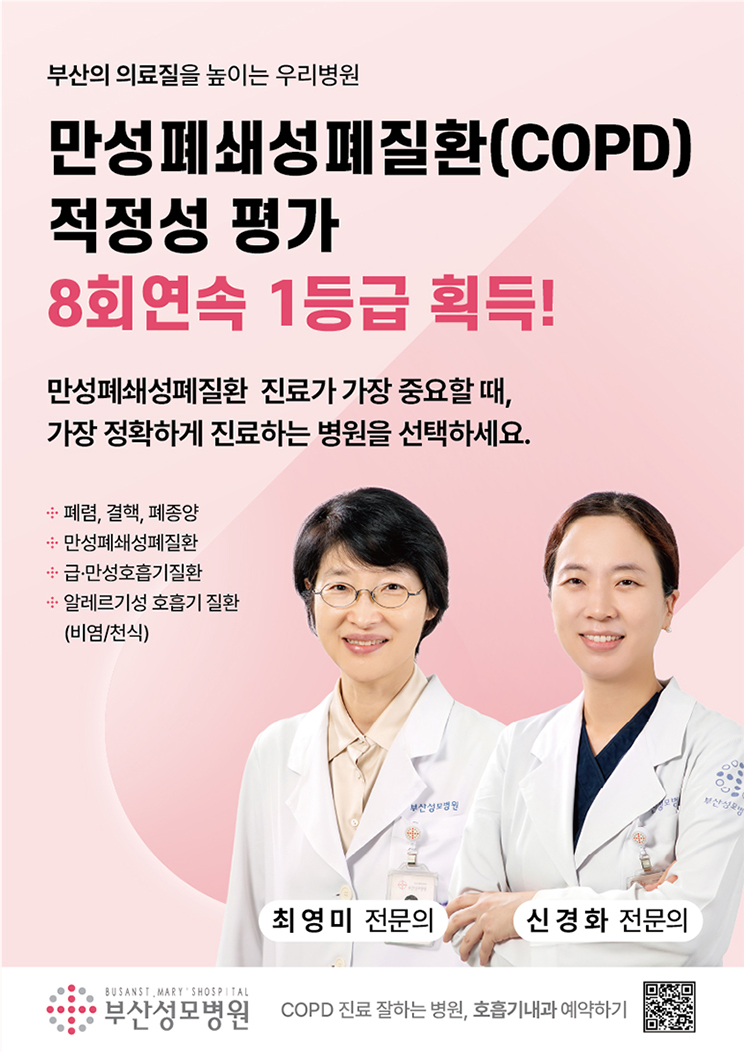 ºÎ»ê¼º¸ðº´¿ø(º´¿øÀå ±¸¼ö±Ç)ÀÌ °Ç°º¸Çè½É»çÆò°¡¿ø(ÀÌÇÏ ½ÉÆò¿ø)ÀÌ ½Ç½ÃÇÑ 'Á¦10Â÷ ¸¸¼ºÆó¼â¼ºÆóÁúȯ(COPD) ÀûÁ¤¼º Æò°¡'¿¡¼ 8ȸ ¿¬¼ÓÀ¸·Î '1µî±Þ'À» ȹµæÇϸç COPD Ä¡·áÀÇ Å¹¿ùÇÑ ¿ª·®À» ´Ù½Ã Çѹø ÀÔÁõÇß´Ù. ÀÌ´Â 2017³âºÎÅÍ Áö¼ÓÀûÀ¸·Î ÃÖ¿ì¼ö µî±ÞÀ» À¯ÁöÇØ ¿Â °ªÁø ¼º°úÀÌ´Ù.