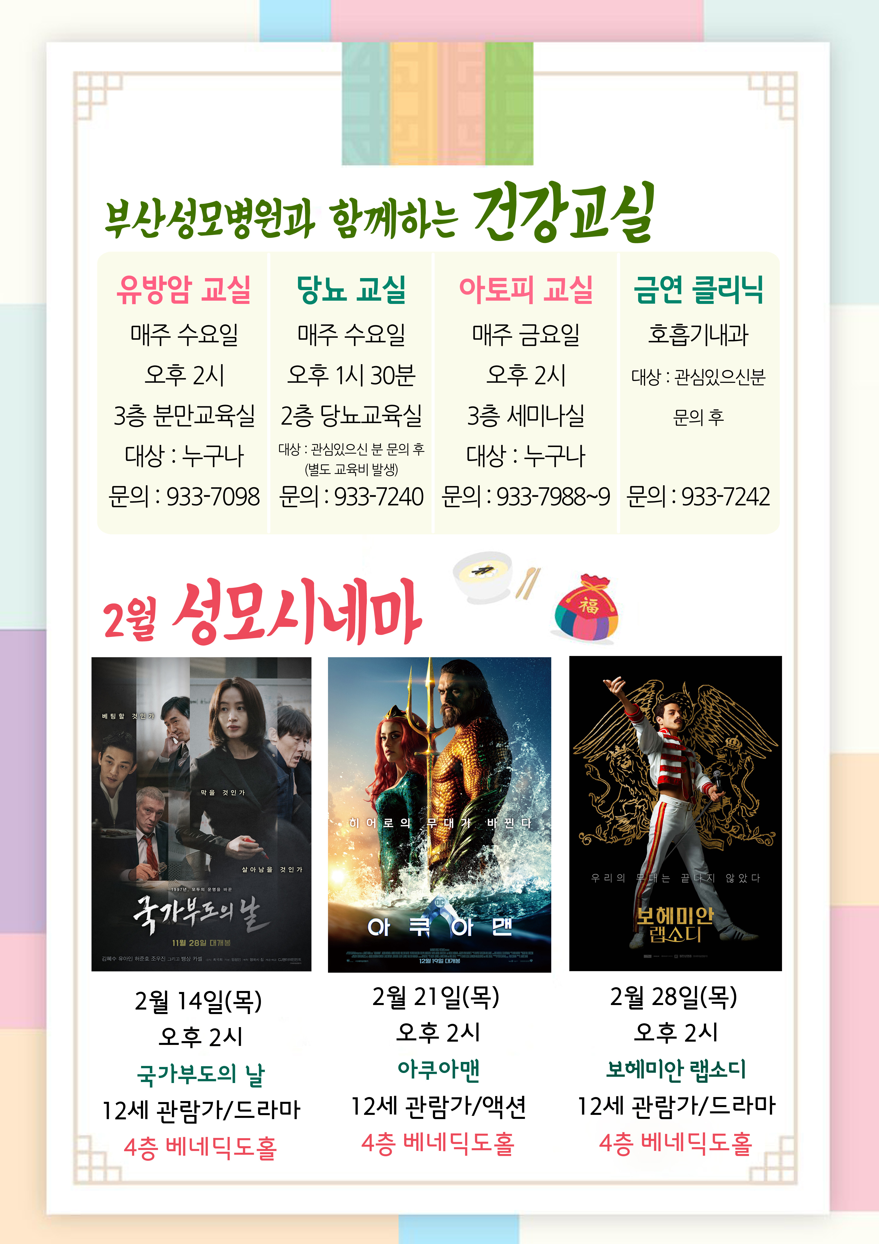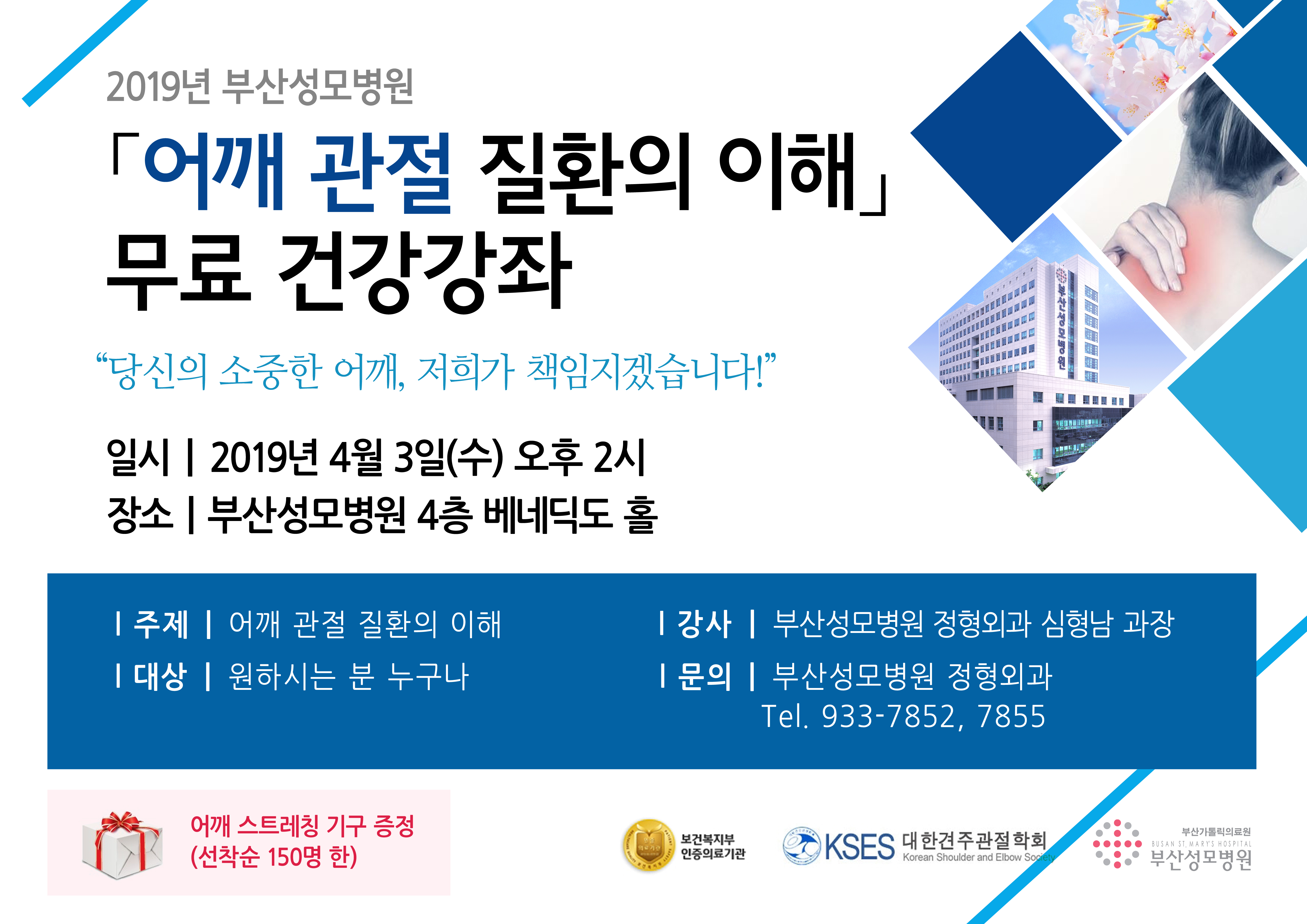 공지사항 스크린도어 설치로 인한 병문안 안내 2019-04-09 관리자. 2019년 4월 건강교실 및 성모시네마 상영 안내 2019-03-29 관리자. 어깨 관절 질환의 이해-무료 건강강좌 2019-03-05 관리자 2019년 3월 건강교실 및 성모시네마 상영 안내 2019-02-28 관리자 2019년 2월 건강교실 및 성모시네마 상영 안내 2019-02-01 관리자 2019년 설날 연휴 진료 안내 2019-01-29 관리자 17 | 18 | 19 | 20 | 21 | 22 | 23 | 24 제목 작성자 내용