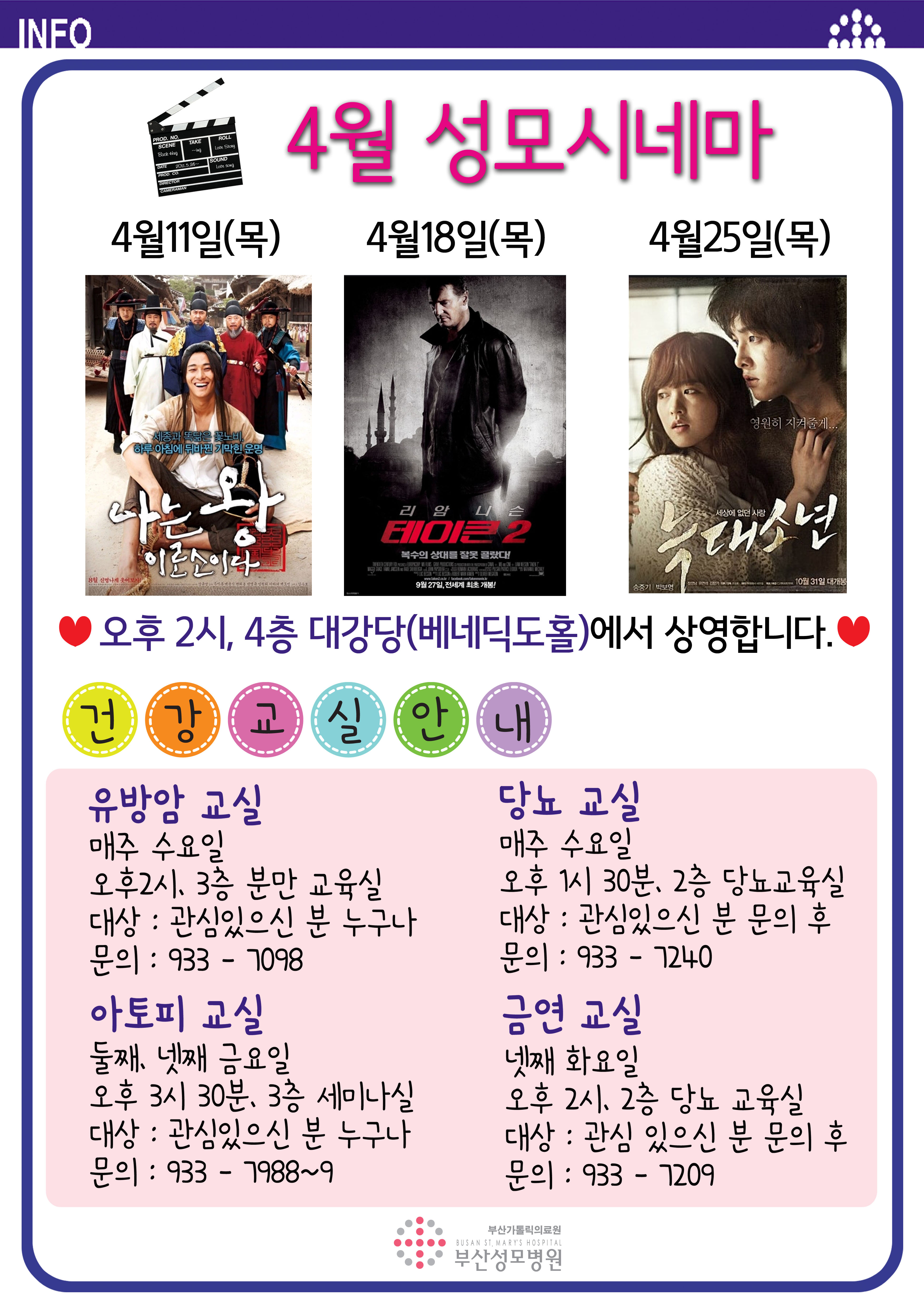 공지사항 부산성모병원 6월 원내행사 안내입니다. 2013-05-31 관리자 부산성모병원 5월 원내행사 안내입니다. 2013-05-02 관리자 부산성모병원 4월 원내행사 안내입니다. 2013-04-01 관리자 피부관리실 봄맞이 이벤트 2013-03-05 관리자 부산성모병원 3월 원내행사 안내입니다. 2013-03-05 관리자 수화교실 기초반 개강 안내입니다. 2013-02-19 관리자 33 | 34 | 35 | 36 | 37 | 38 | 39 | 40 제목 작성자 내용
