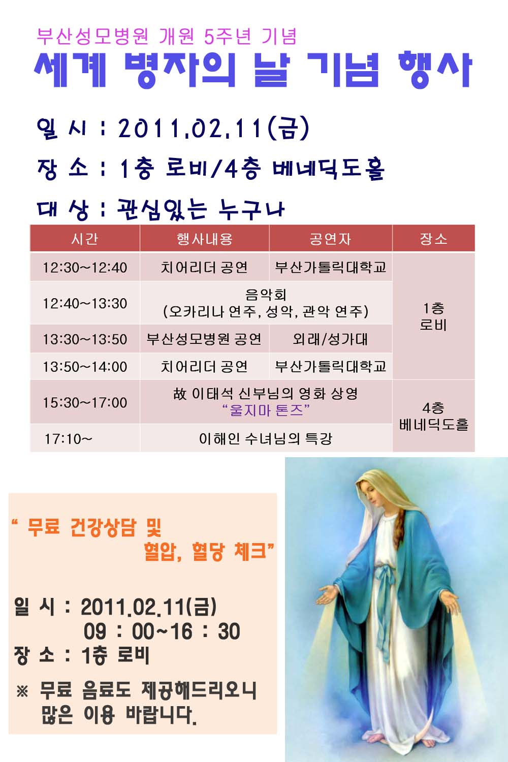 공지사항 부산성모병원 6월 행사안내 2011-06-07 관리자 부산성모병원 3월 원내행사 안내 2011-02-25 관리자 자원봉사자학교 제5기 수강자 모집(마감) 2011-02-23 관리자 세계 병자의 날 행사 안내 2011-01-24 관리자 설연휴 2/5(토) 정상진료 안내 2011-01-21 관리자 무료 생체나이 측정 및 종합검진 상담 안내 2011-01-18 관리자 41 | 42 | 43 | 44 | 45 | 46 | 47 | 48 제목 작성자 내용
